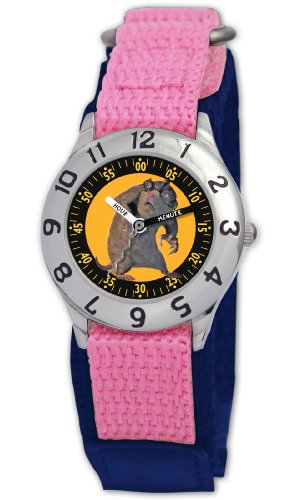 Teach your child how to tell time with Disney's G-Force Watch. With a yellow dial featuring an image of Agent Speckles and clearly labeled "HOUR" and "MINUTE" hands, this watch is designed to familiarize children with analog timekeeping. The metal bezel features oversized, easy-to-read black Arabic numerals, while the durable pink nylon Velcro watchband allows kids to slip the watch on and off without worrying about a buckle. A must-have for fans of Disney, this fun-to-wear watch features quartz movement and is water resistant to 99 feet (30 meters).